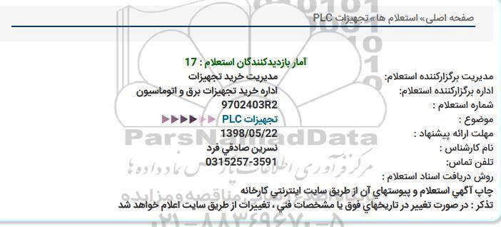 اداره برگزارکننده استعلام: اداره خرید تجهیزات برق و اتوماسیون