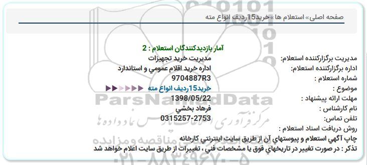 اداره برگزارکننده استعلام: اداره خرید اقلام عمومی و استاندارد