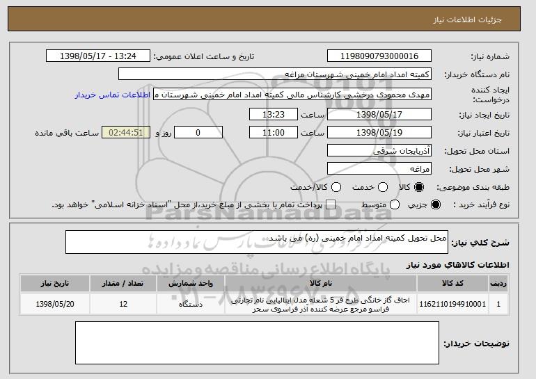 نام دستگاه خریدار:کمیته امداد امام خمینی شهرستان مراغه