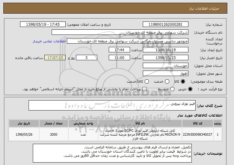 شرح کلی نیاز: فیبر نوری بیرونی