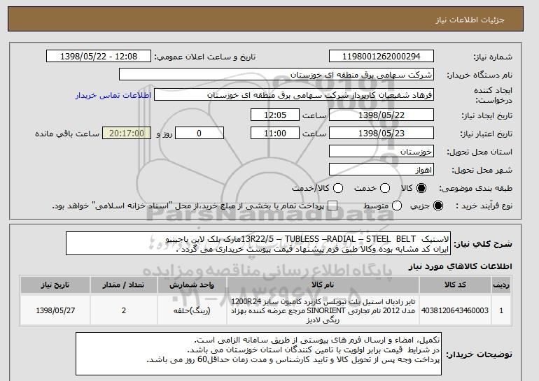 نام دستگاه خریدار:شرکت سهامی برق منطقه ای خوزستان