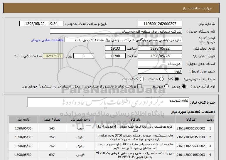 نام دستگاه خریدار:شرکت سهامی برق منطقه ای خوزستان