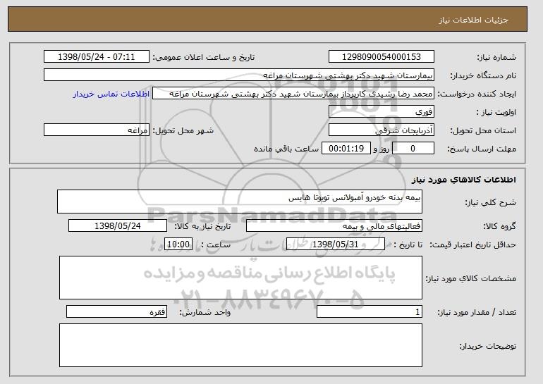 استعلام بیمه بدنه خودرو آمبولانس تویوتا هایس, استعلام بیمه بدنه خودرو آمبولانس تویوتا هایس