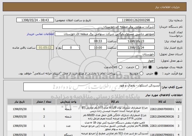شرح کلی نیاز: آبسردکن استکول - یخچال و هود
