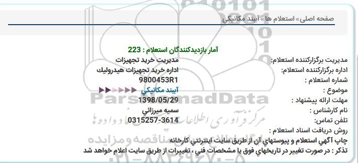 اداره برگزارکننده استعلام: اداره خرید تجهیزات هیدرولیک