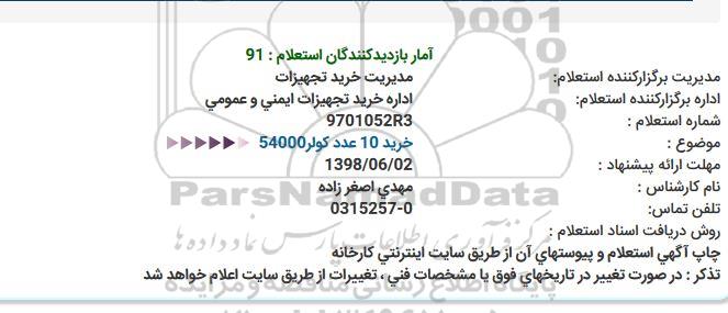 اداره برگزارکننده استعلام:     اداره خرید تجهیزات ایمنی و عمومی
