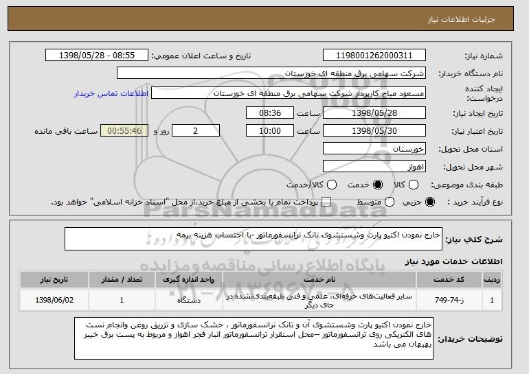 شرح کلی نیاز: خارج نمودن اکتیو پارت وشستشوی تانک ترانسفورماتور -با احتساب هزینه بیمه