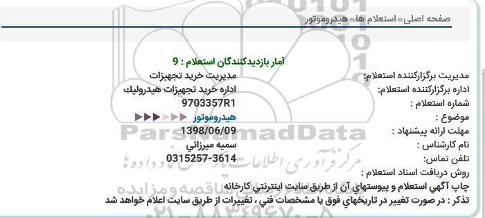 اداره برگزارکننده استعلام: اداره خرید تجهیزات هیدرولیک