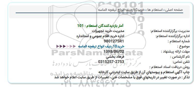 اداره برگزارکننده استعلام: اداره خرید اقلام عمومی و استاندارد