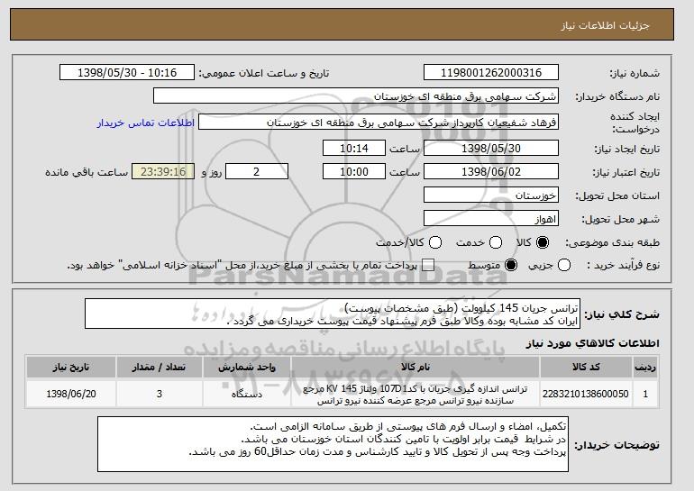 نام دستگاه خریدار:شرکت سهامی برق منطقه ای خوزستان