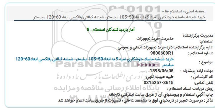 اداره برگزارکننده استعلام: اداره خرید تجهیزات ایمنی و عمومی