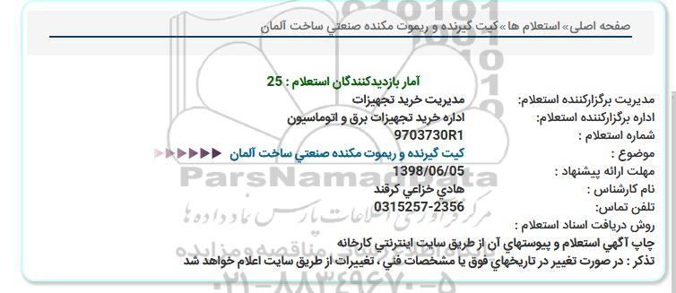 اداره برگزارکننده استعلام: اداره خرید تجهیزات برق و اتوماسیون