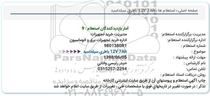 استعلام 12V 7Ah باطری سیلداسید , استعلام, استعلام 12V 7Ah باطری سیلداسید