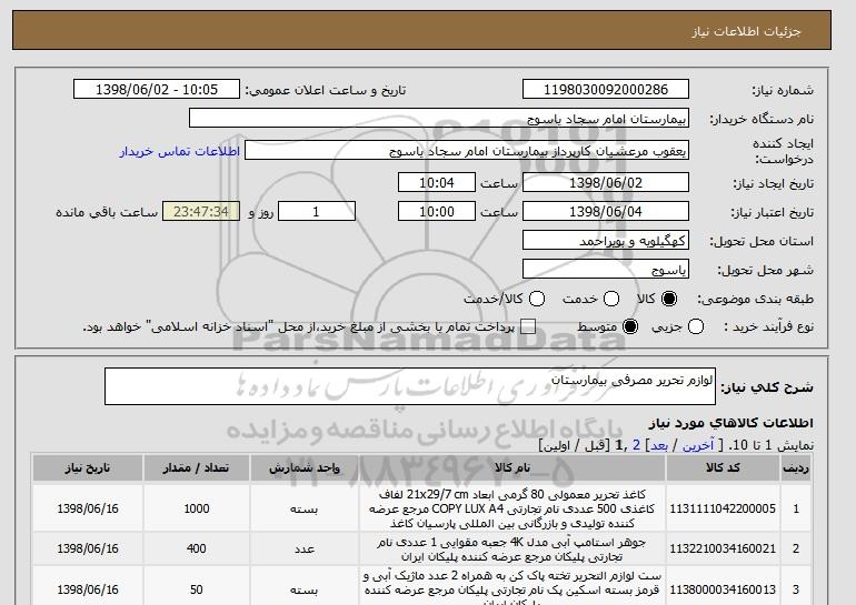 نام دستگاه خریدار:بیمارستان امام سجاد یاسوج