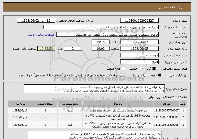 نام دستگاه خریدار:شرکت سهامی برق منطقه ای خوزستان