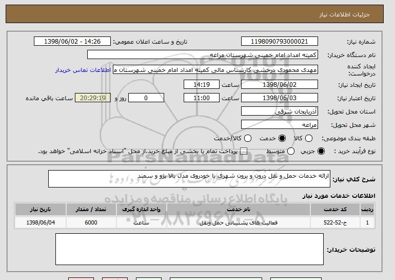 نام دستگاه خریدار:کمیته امداد امام خمینی شهرستان مراغه