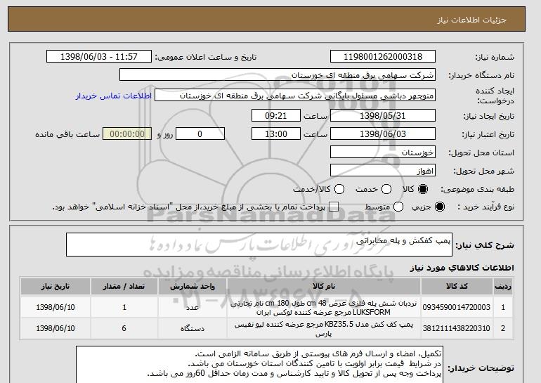 نام دستگاه خریدار:شرکت سهامی برق منطقه ای خوزستان