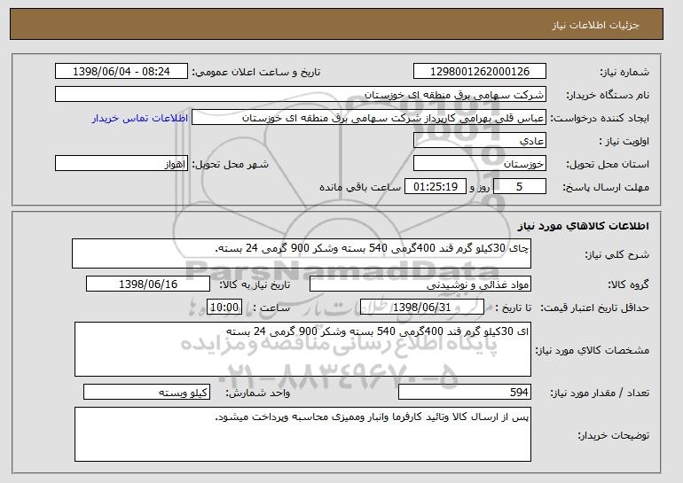 نام دستگاه خریدار:شرکت سهامی برق منطقه ای خوزستان