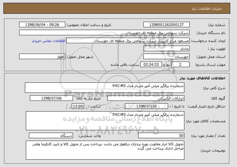 نام دستگاه خریدار:شرکت سهامی برق منطقه ای خوزستان