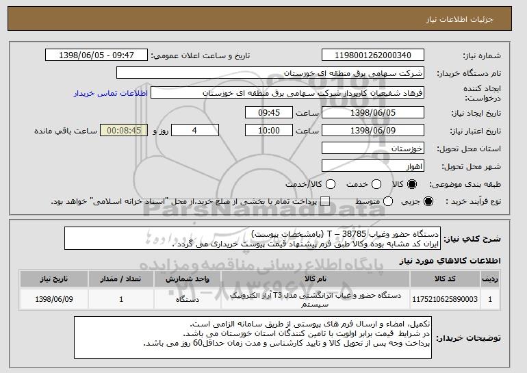 شرح کلی نیاز: دستگاه حضور وغیاب T – 38785 (بامشخصات پیوست)
