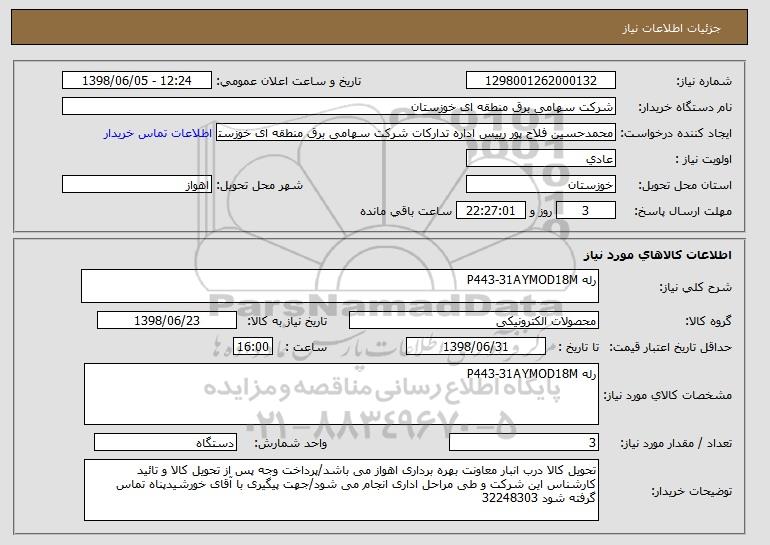 شرح کلی نیاز: رله P443-31AYMOD18M