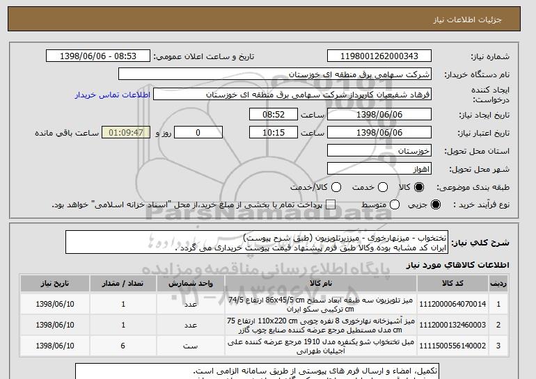 استعلام تختخواب - میزنهارخوری - میززیرتلویزیون (طبق شرح پیوست) ایران کد مشابه بوده وکالا طبق فرم پیشنهاد قیمت پیوست خریداری می گردد ., استعلام تختخواب - میزنهارخوری - میززیرتلویزیون (طبق شرح پیوست) ایران کد مشابه بوده وکالا طبق فرم پیشنهاد قیمت پیوست خریداری می گردد .