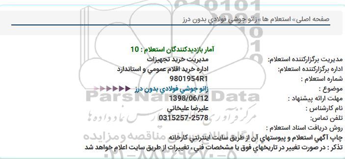اداره برگزارکننده استعلام: اداره خرید اقلام عمومی و استاندارد