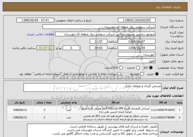 استعلام صندلی گردان و مبلمان اداری , استعلام صندلی گردان و مبلمان اداری