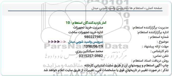استعلام سرویس و اسید شویی مبدل , استعلام ، استعلام سرویس و اسید شویی مبدل