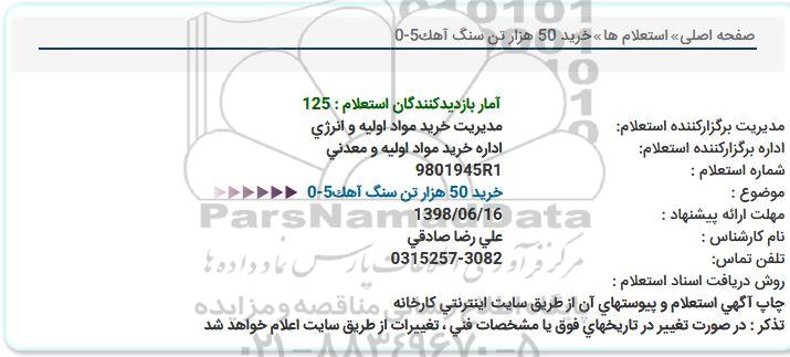 موضوع : خرید 50 هزار تن سنگ آهک 5-0