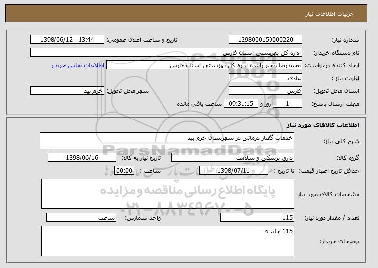 شرح کلی نیاز: خدمات گفتار درمانی در شهرستان خرم بید