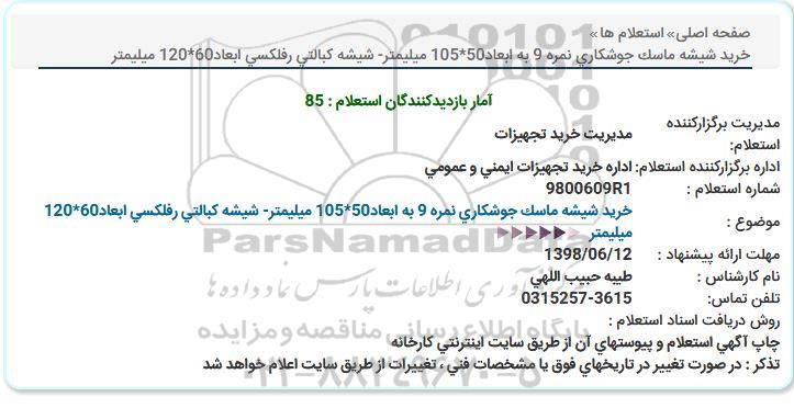 اداره برگزارکننده استعلام: اداره خرید تجهیزات ایمنی و عمومی