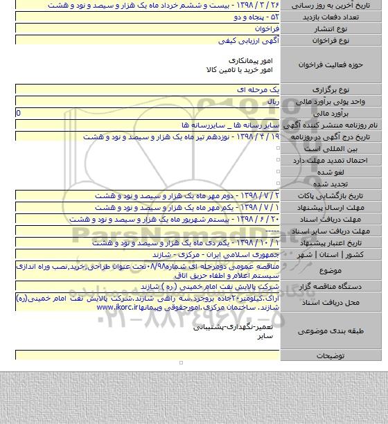مناقصه عمومی دومرحله ای شماره۰۸/۹۸تحت عنوان طراحی٫خرید٫نصب وراه اندازی سیستم اعلام و اطفاء حریق اتاق