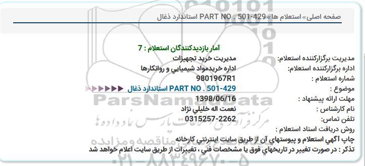 موضوع : PART NO . 501-429 استاندارد ذغال