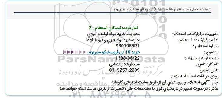 استعلام خرید 10 تن فروسیلیکو منیزیوم , استعلام, استعلام خرید 10 تن فروسیلیکو منیزیوم