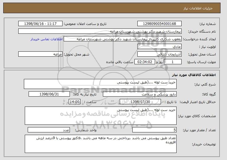 نام دستگاه خریدار:بیمارستان شهید دکتر بهشتی شهرستان مراغه