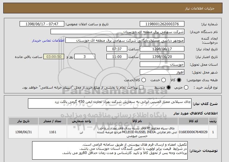 نام دستگاه خریدار:شرکت سهامی برق منطقه ای خوزستان