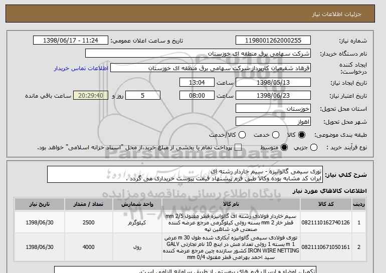 نام دستگاه خریدار:شرکت سهامی برق منطقه ای خوزستان
