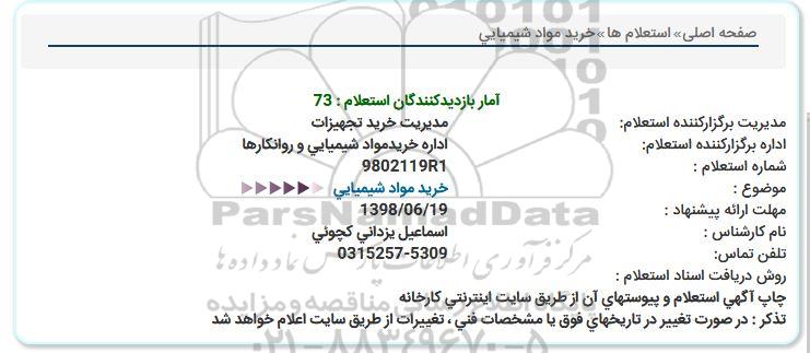 اداره برگزارکننده استعلام: اداره خرید مواد شیمیایی و روانکارها