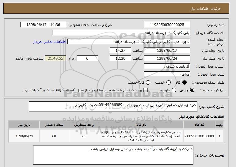 نام دستگاه خریدار:پلی کلینیک شهرستان مراغه