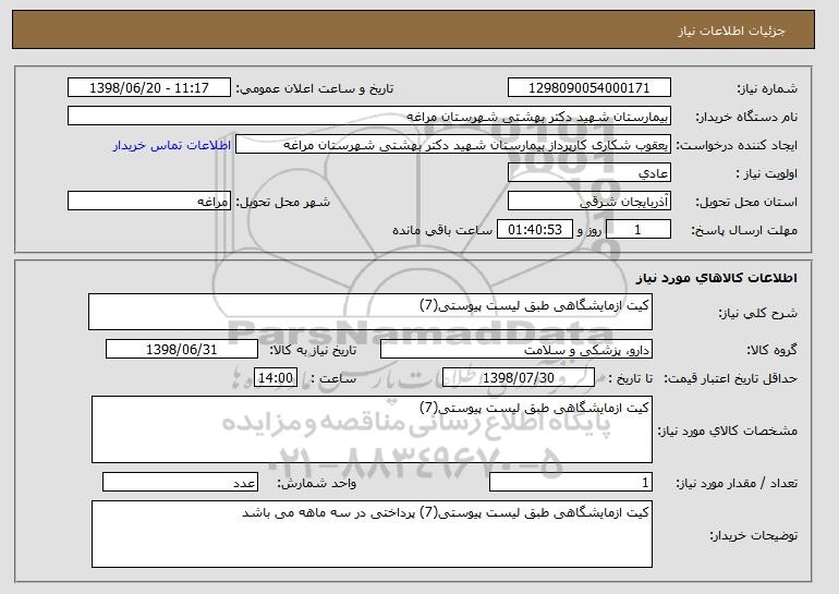 نام دستگاه خریدار:بیمارستان شهید دکتر بهشتی شهرستان مراغه