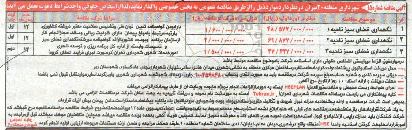 مناقصه نگهداری فضای سبز , آگهی مناقصه , مناقصه نگهداری فضای سبز