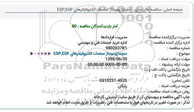 موضوع : دمونتاژ و مونتاژ صفحات الکتروفیلترهای ESP, EGF