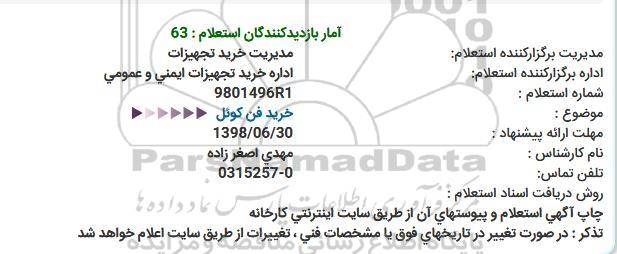 اداره برگزارکننده استعلام: اداره خرید تجهیزات ایمنی و عمومی