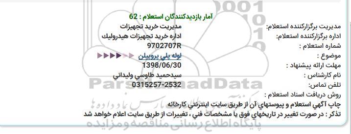 اداره برگزارکننده استعلام: اداره خرید تجهیزات هیدرولیک
