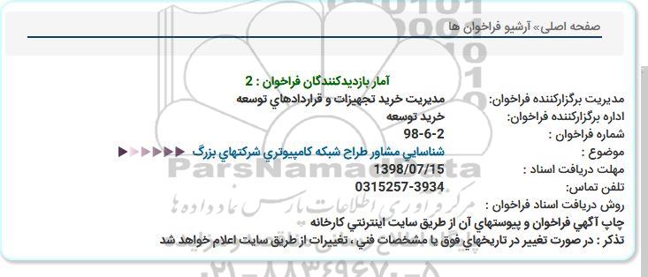 موضوع : شناسایی مشاور طراح شبکه کامپیوتری شرکتهای بزرگ