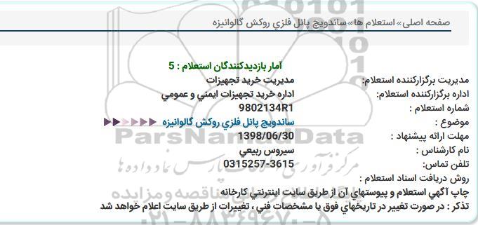 اداره برگزارکننده استعلام: اداره خرید تجهیزات ایمنی و عمومی