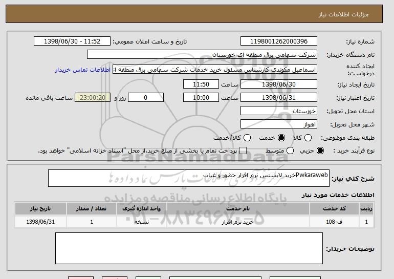 شرح کلی نیاز: Pwkarawebخرید لایسنس نرم افزار حضور و غیاب
