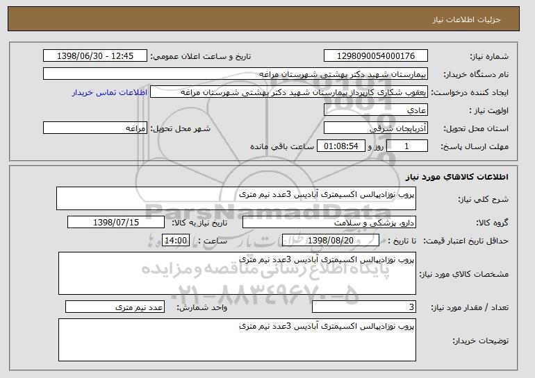 نام دستگاه خریدار:بیمارستان شهید دکتر بهشتی شهرستان مراغه