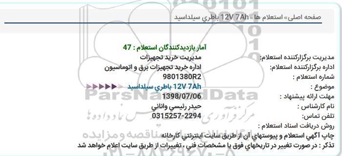 اداره برگزارکننده استعلام: اداره خرید تجهیزات برق و اتوماسیون
